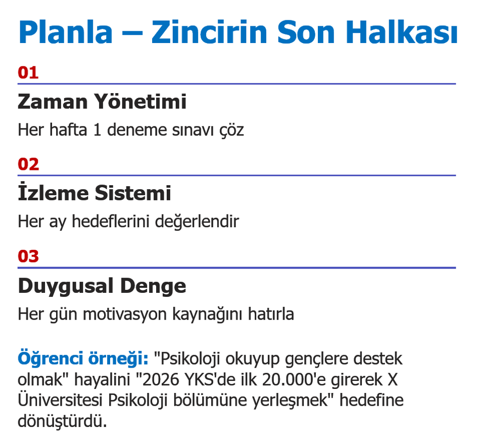 Bu blogla birlikte artık öğrenci sadece hayal kurmuyor; hayalini tanıyor, onu hedefe dönüştürüyor ve bu hedefe giden zihinsel rotasını çiziyor. Bu farkındalık, öğrencinin sadece sınava değil, kendi hayatına da yön vermesini sağlar. Çünkü sınav bir son değil; bir başlangıçtır.