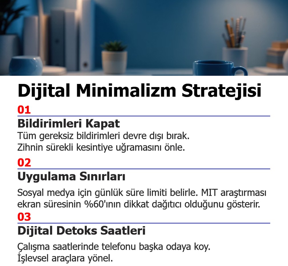 • Sürekli bildirimler, zihni bölerek dikkat süresini kısaltır.