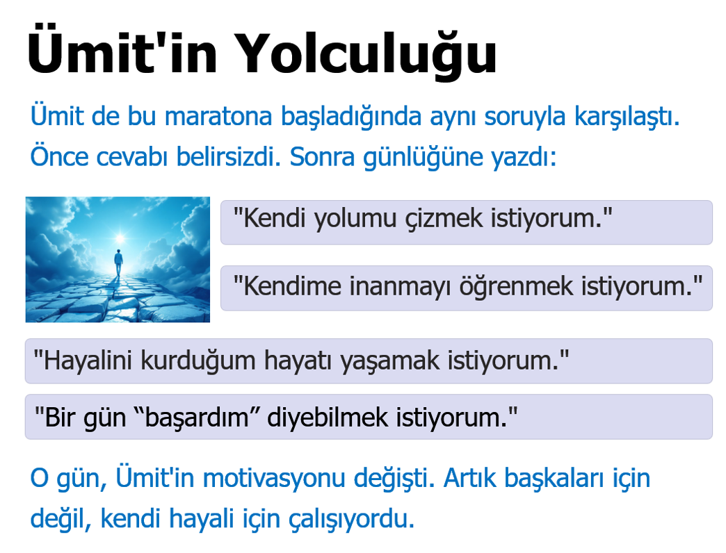 Sınav süreci, çoğu öğrenci için bir yarış gibi görünür. Ancak bu yarış, sadece hızla koşmakla değil, neden koştuğunu bilmekle anlam kazanır. Tıpkı bir maraton koşucusunun yarışa başlamadan önce zihinsel olarak hazırlanması gibi, sınava hazırlanan bir öğrencinin de önce kendi nedenini keşfetmesi gerekir. Bu yazı, işte tam da bu noktada sana rehberlik etmek için hazırlandı.