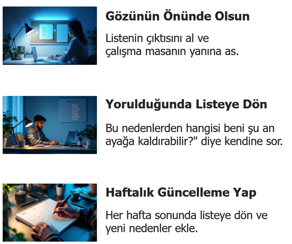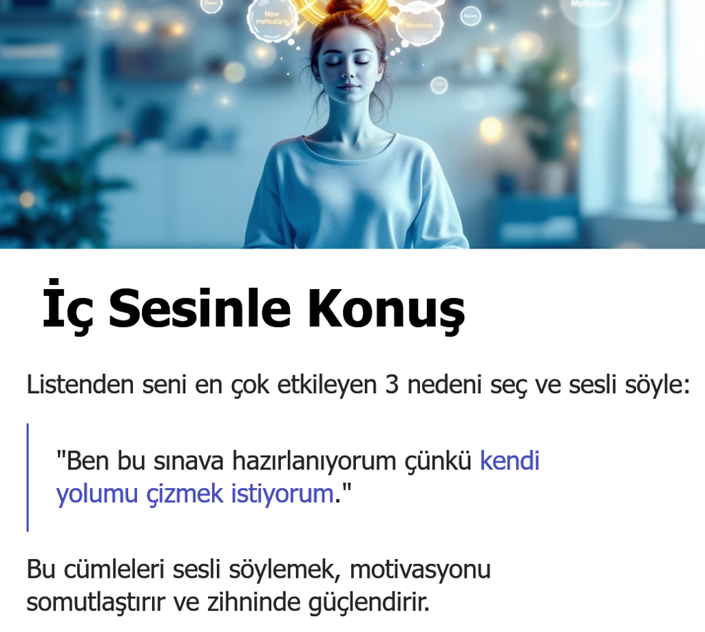 • Bu cümleleri sesli söylemek, motivasyonu somutlaştırır.